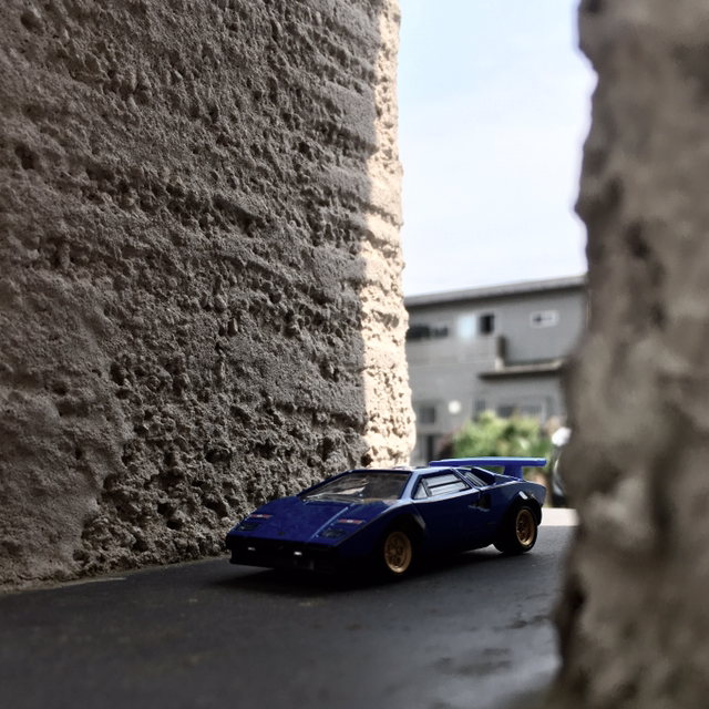 ミニカー投稿第3弾はランボルギーニカウンタックです。70年代のスーパーブームの時に一番人気があった車ではないでしょうか。当時、カウンタックのようなリトラクタブル・ヘッドライト(格納式前照灯)が流行り、子供用の自転車にもこのライトが採用されたりしました。懐かしいですね。ちなみにこの写真は私の家のベランダで撮影しました。ヨーロッパの風景みたいに見えると良いのですが。